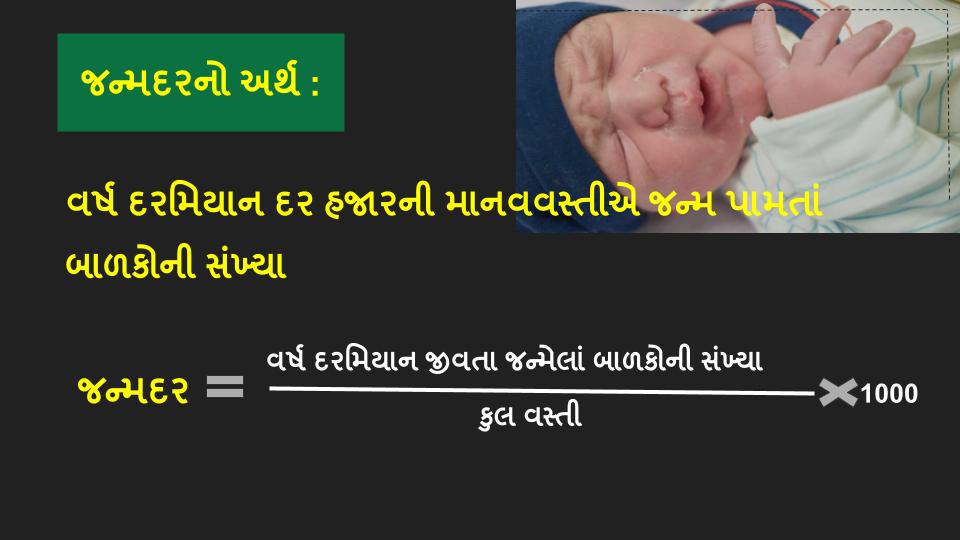 “વર્ષ દરમિયાન 15થી 49 વર્ષની વય ધરાવતી દર 1000 સ્ત્રીઓની કુખે જીવતાં જન્મેલાં બાળકોની સંખ્યાને પ્રજનનનો દર કહે છે.